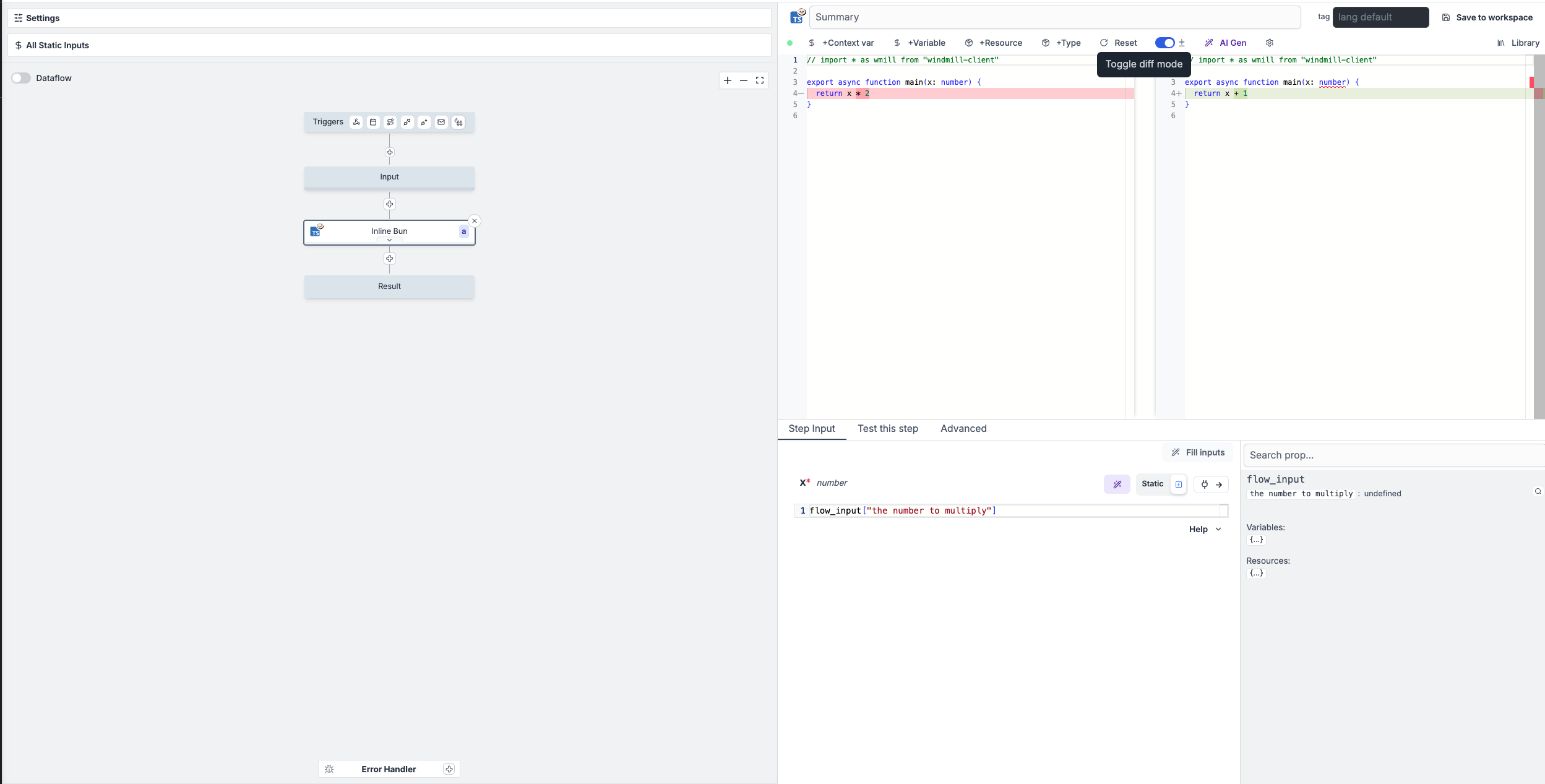 - Links flow step inputs to previous steps results.